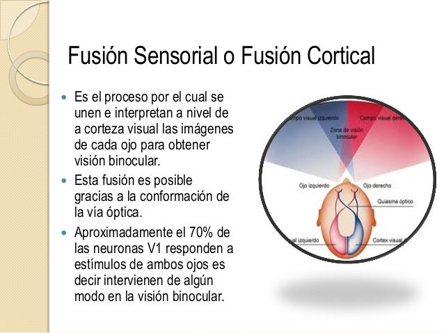 Para que las percepciones visuales resulten más elocuentes, normalmente se fusionan entre sí las imágenes visuales de ambos ojos según los «puntos correspondientes» de las dos retinas. La corteza visual ocupa un lugar importante en el proceso de fusión.