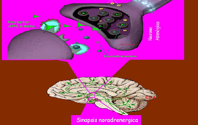 - 1) un sistema noradrenérgico: (suele actuar como una hormona excitador, este sistema está diseminado prácticamente por cualquiera de sus zonas)