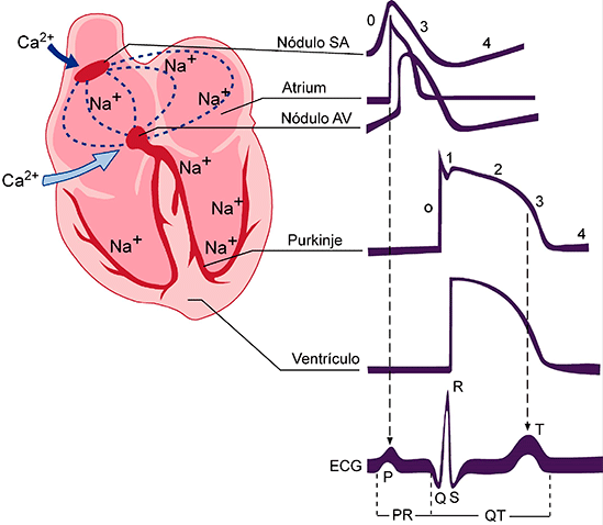 En el músculo cardíaco, el potencial de acción está producido por la apertura de dos tipos de canales: