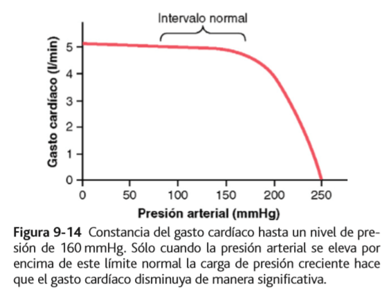 Durante la función normal del corazón a presiones arteriales sistólicas normales (80 a 140 mmHg) el gasto cardíaco está determinado casi totalmente por la facilidad del flujo sanguíneo a través de los tejidos corporales, que a su vez controla el retorno venoso de la sangre hacia el corazón