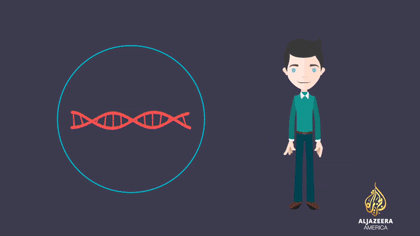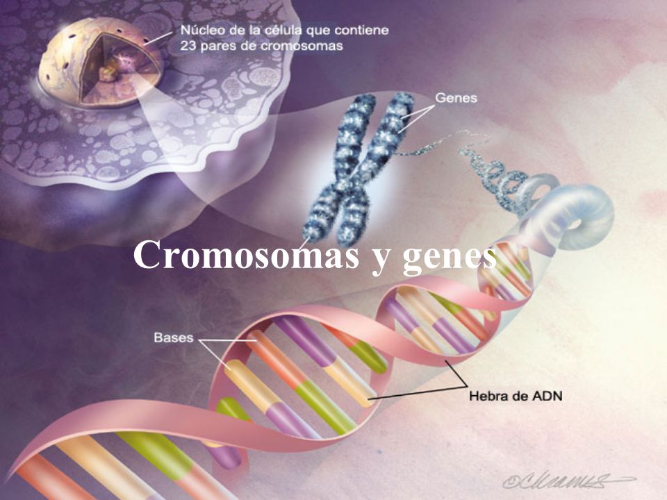 Los genes se encuentran en el núcleo unido por sus extremos, formando moléculas de doble hélice largas de ADN,